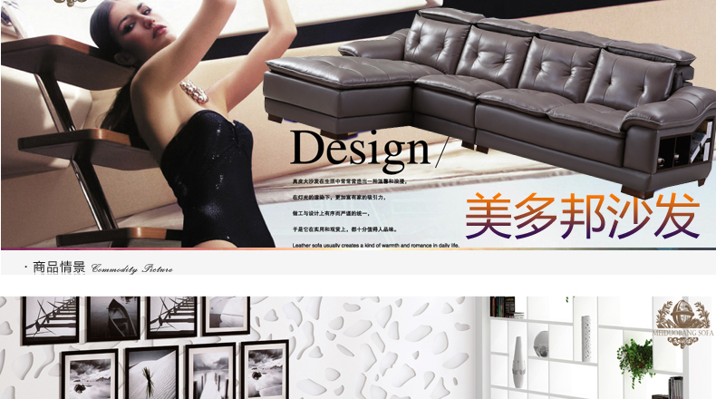 美多邦真皮沙发奢华客厅L型转角皮艺沙发家居沙发组合8615