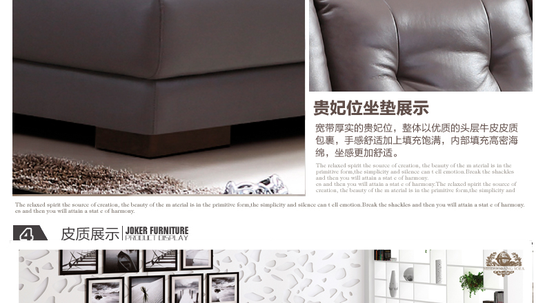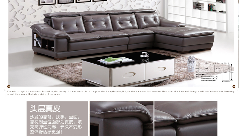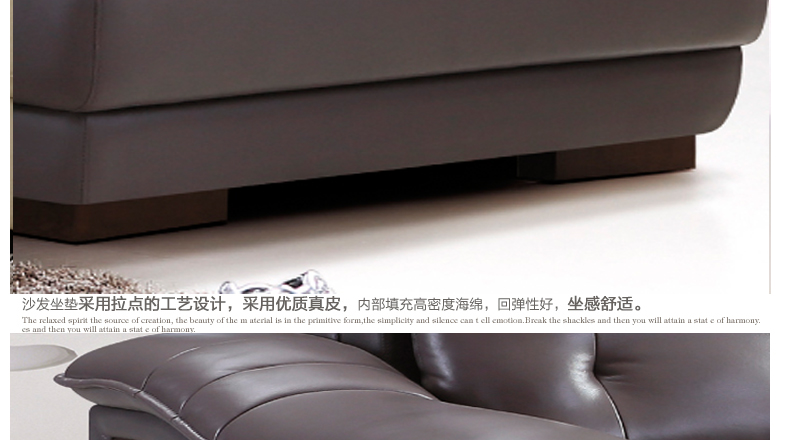 沙发真皮部分采用头层真皮,质感一流,韧性十足;木材采用全实木精心雕刻,让家成为心灵的港湾,店长推荐