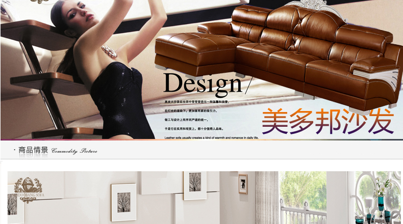 美多邦真皮沙发 头层牛皮 奢华客厅L型转角皮艺沙发组合8616