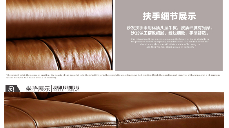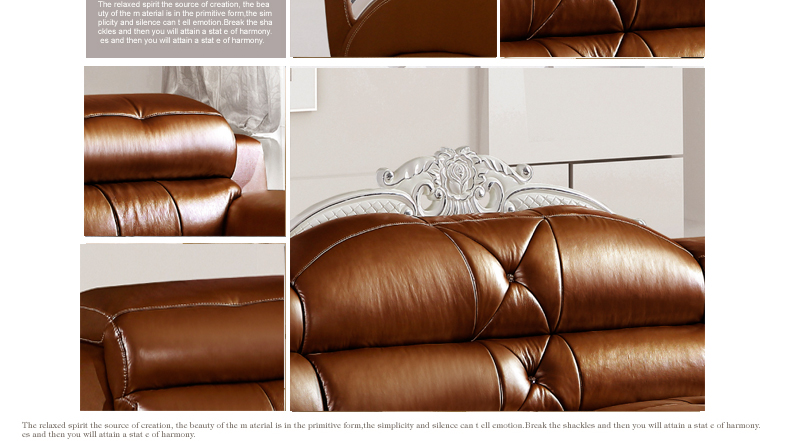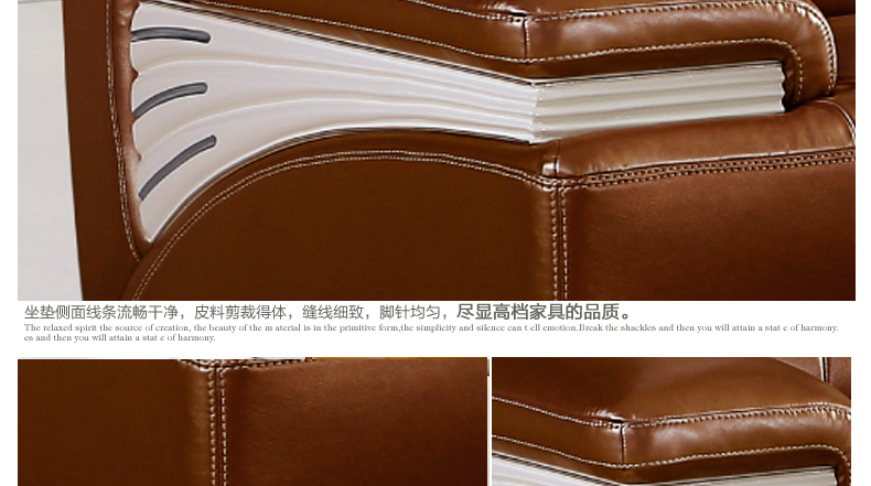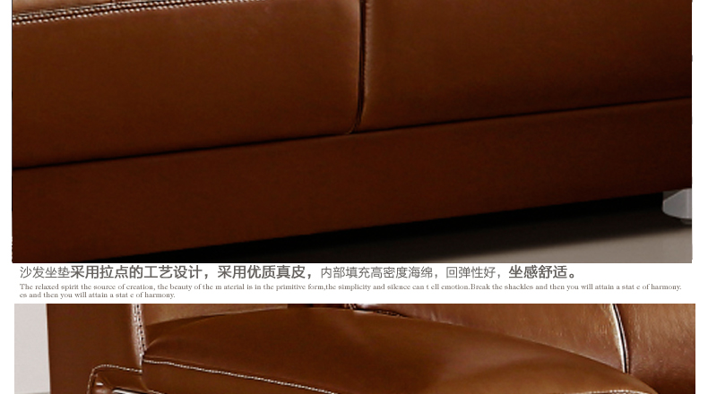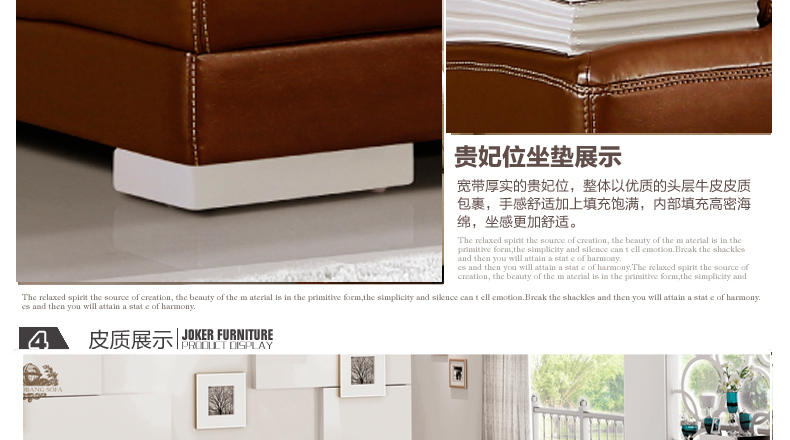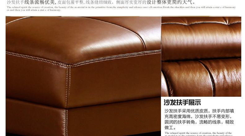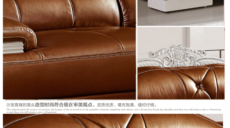 沙发真皮部分采用头层真皮,质感一流,韧性十足;木材采用全实木精心雕刻,让家成为心灵的港湾,店长推荐