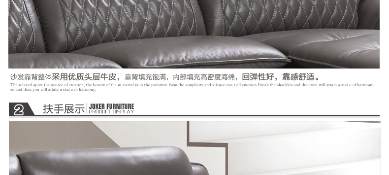 沙发真皮部分采用头层真皮,质感一流,韧性十足;木材采用全实木精心雕刻,让家成为心灵的港湾,店长推荐