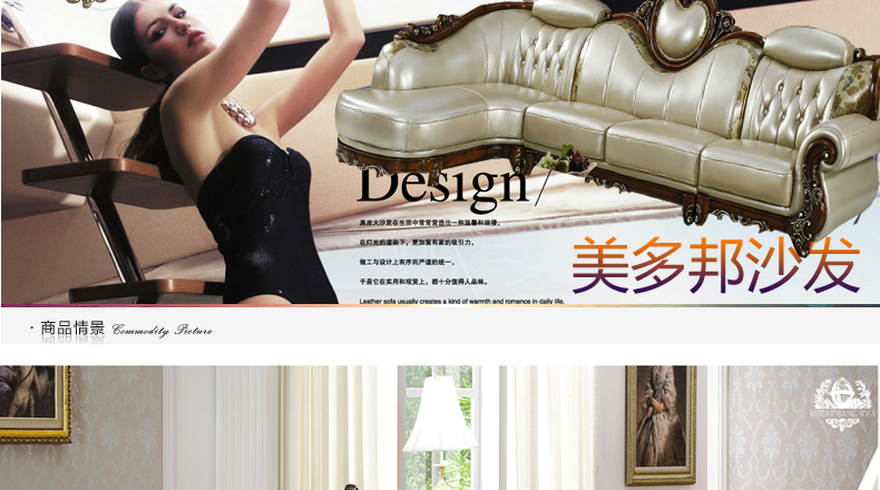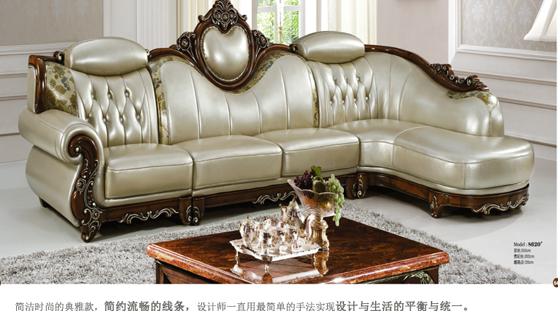 美多邦 欧式真皮沙发 转角客厅l大小户型奢华高档皮艺沙发组合8620