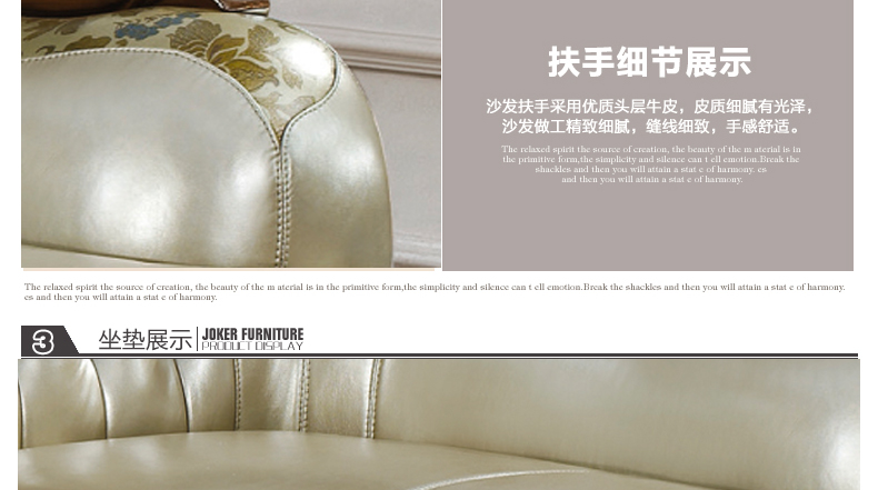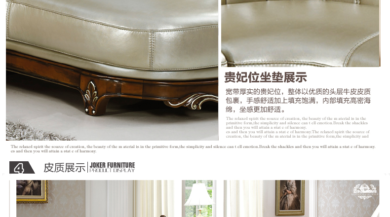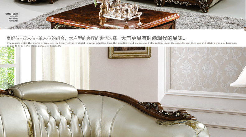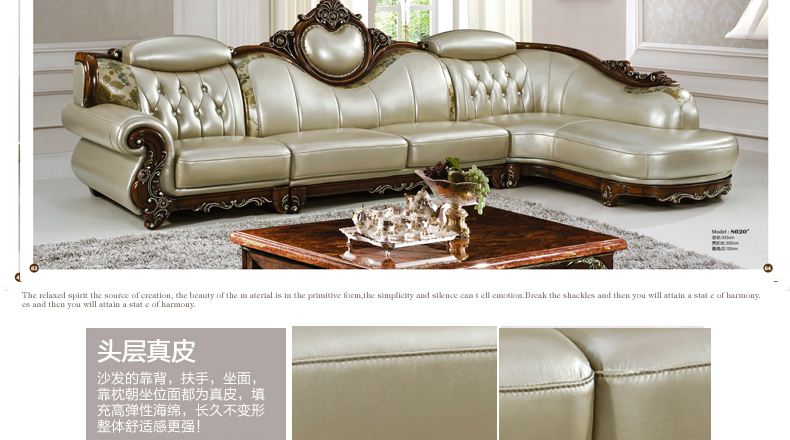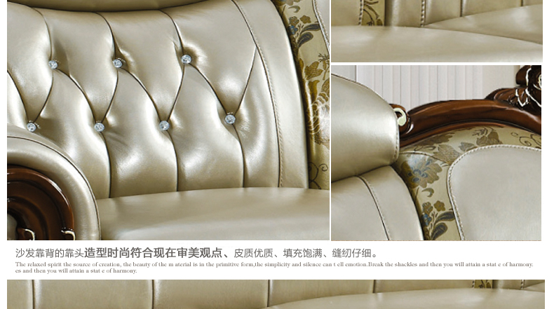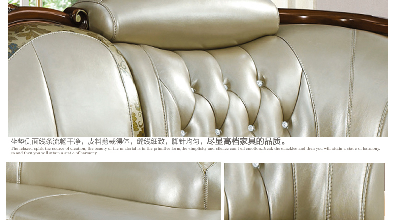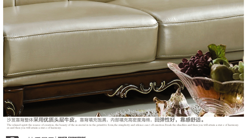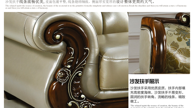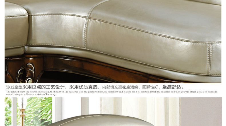 沙发真皮部分采用头层真皮,质感一流,韧性十足;木材采用全实木精心雕刻,让家成为心灵的港湾,店长推荐