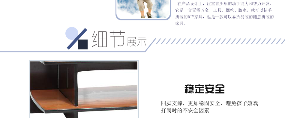 精巧的卡扣设计 紧密连接每一块板材 选用欧盟标准的E0级板材 健康环保