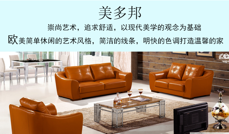美多邦 真皮沙发组合 现代简约奢华头层厚牛皮别墅大客厅户型8919