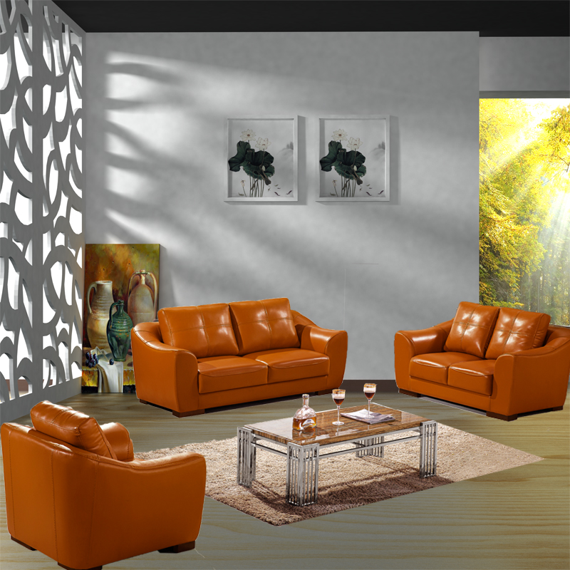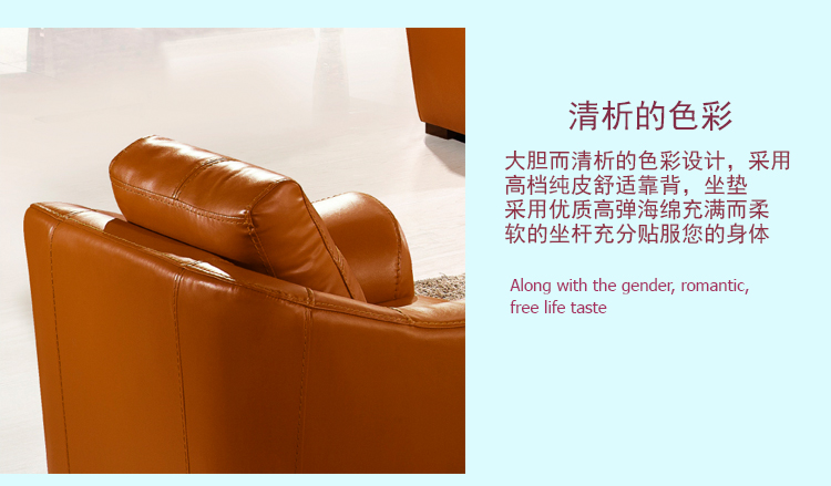 沙发皮质很不错,摸起来很舒服,坐着软硬适中,颜色跟图片一致,很漂亮,我很满意