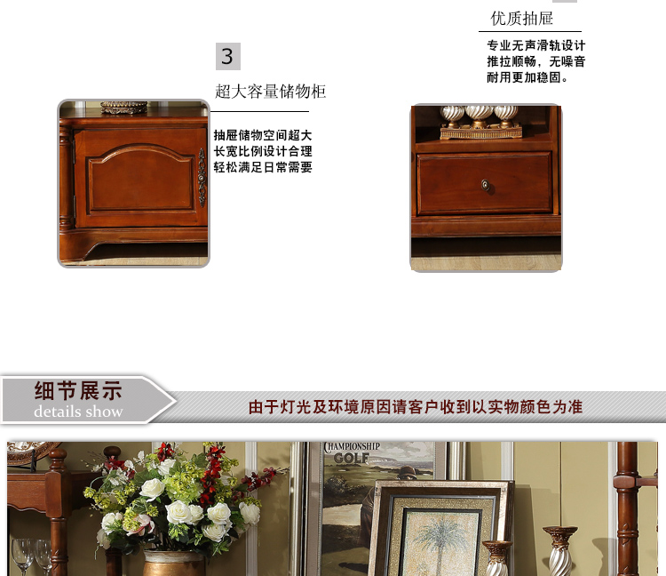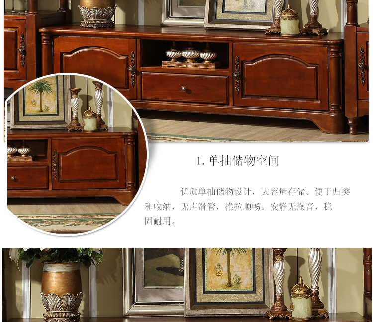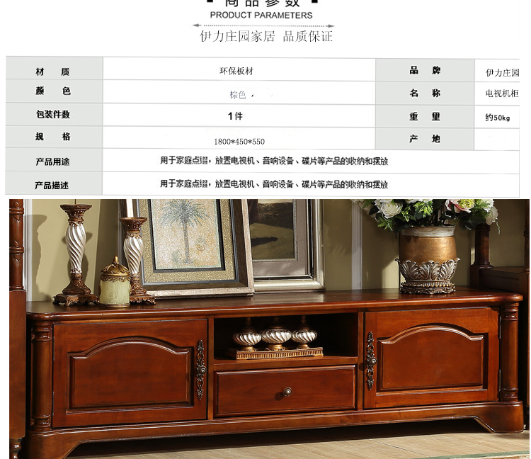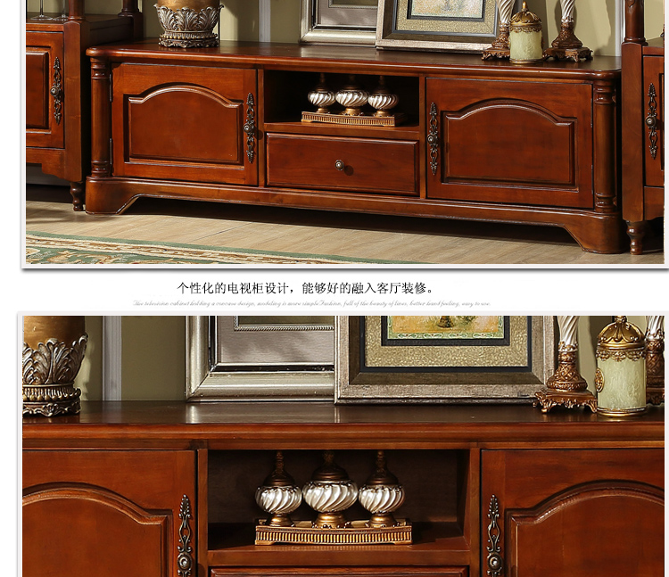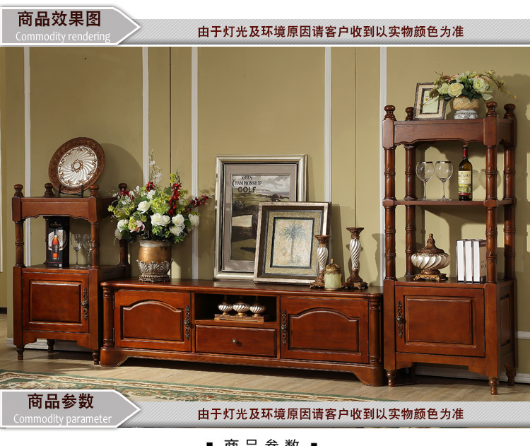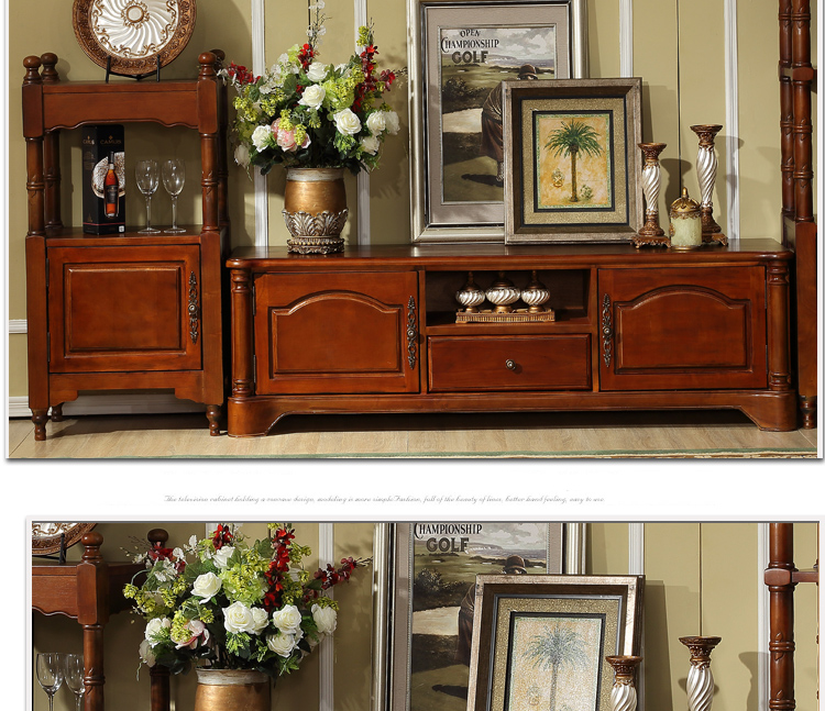 伊力庄园实木美式乡村田园风格客厅摆放实木地柜电视柜5362