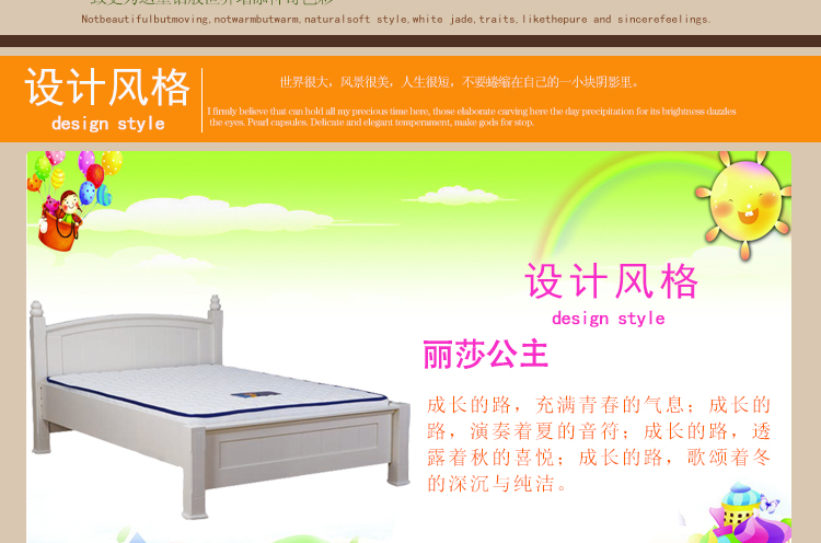 爱睿丽莎公主儿童床青少年1.2 1.5米板式床现代简约单人床板床家具LPC-0135