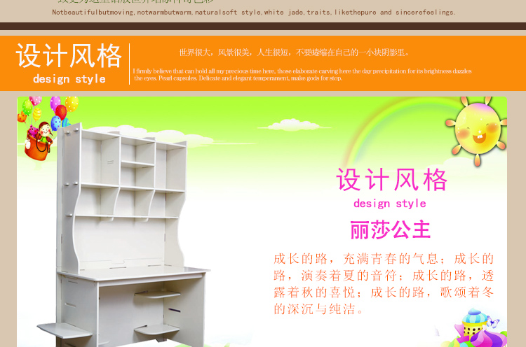 爱睿丽莎公主儿童DIY 家具儿童学习桌学生写字桌板式环保组合书桌LPDL-02