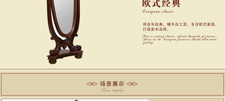 欧式穿衣镜子全身镜实木试衣镜古典美实木鼎盛mt782-a
