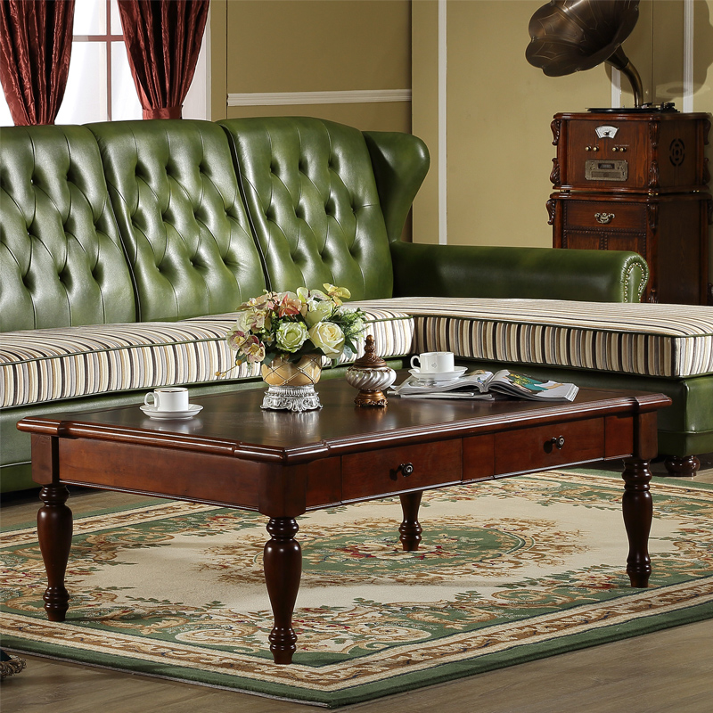 伊力庄园美式乡村风格实木客厅艺术长几5388双抽长几5388
