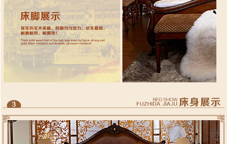 纯实木床 欧式桦木床 1.8米双人床 卧室全实木床主婚床 鼎盛3D-AB02