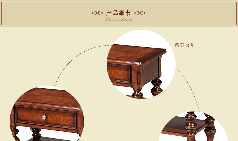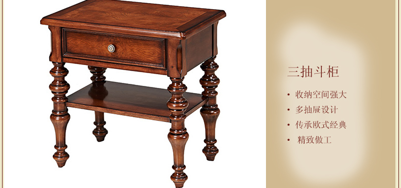 桦木家具收纳柜实木床头柜 简约复古柜 欧式古典柜 简约柜鼎盛3D-AN01