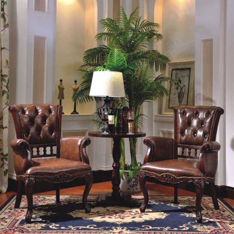 DH美式乡村实木做旧餐椅 简约现代皮艺书椅 化妆椅 酒店会所休闲椅502