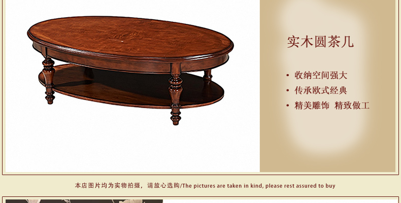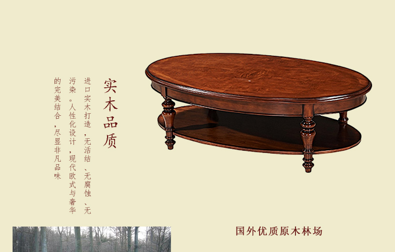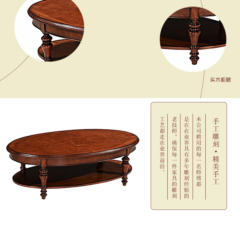 实木茶几 实木圆茶几 欧式复古高档椭圆茶几鼎盛3D-ACT02