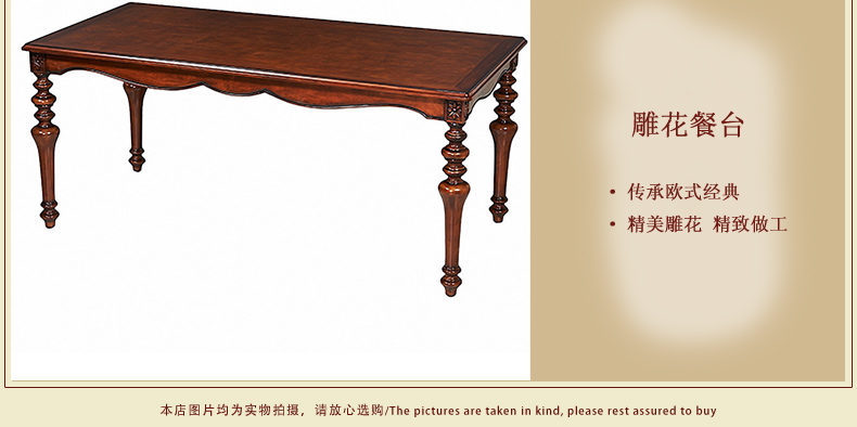 欧式别墅客厅实木长方形餐桌雕花饭桌 奢华餐台鼎盛3D-ADT01