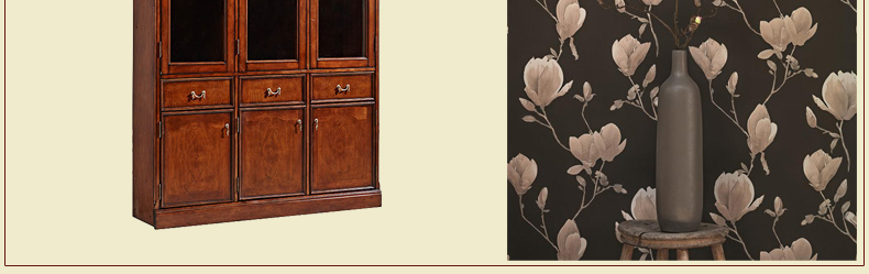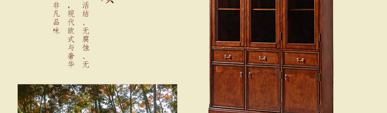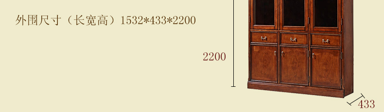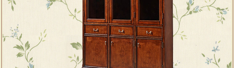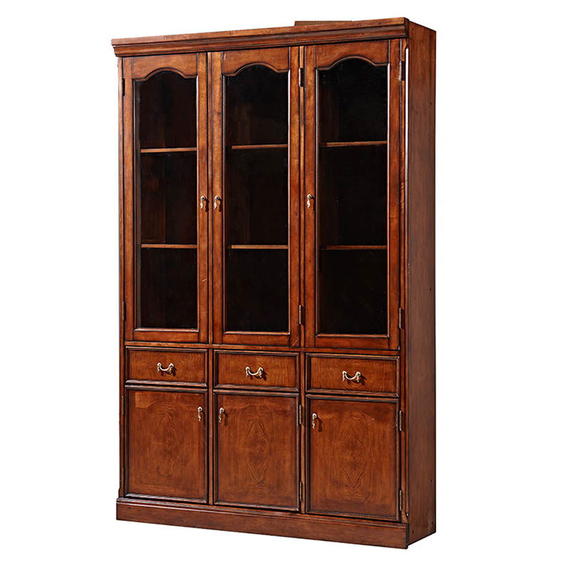 鼎盛实木三门书柜高档复古 欧式实木三门书柜3D-ABC01A