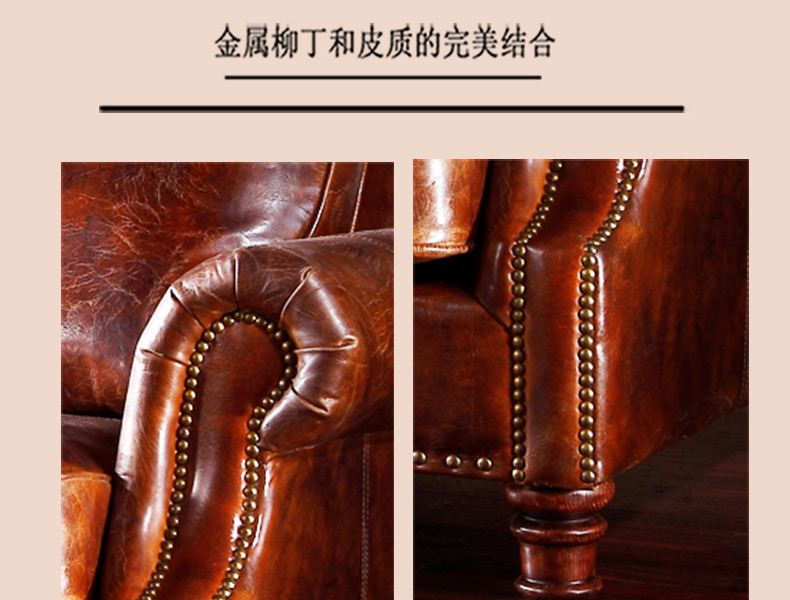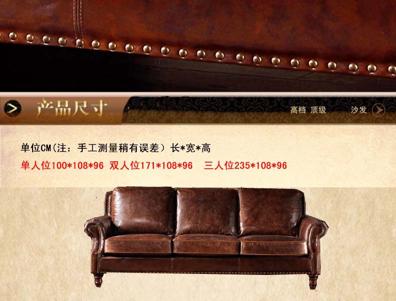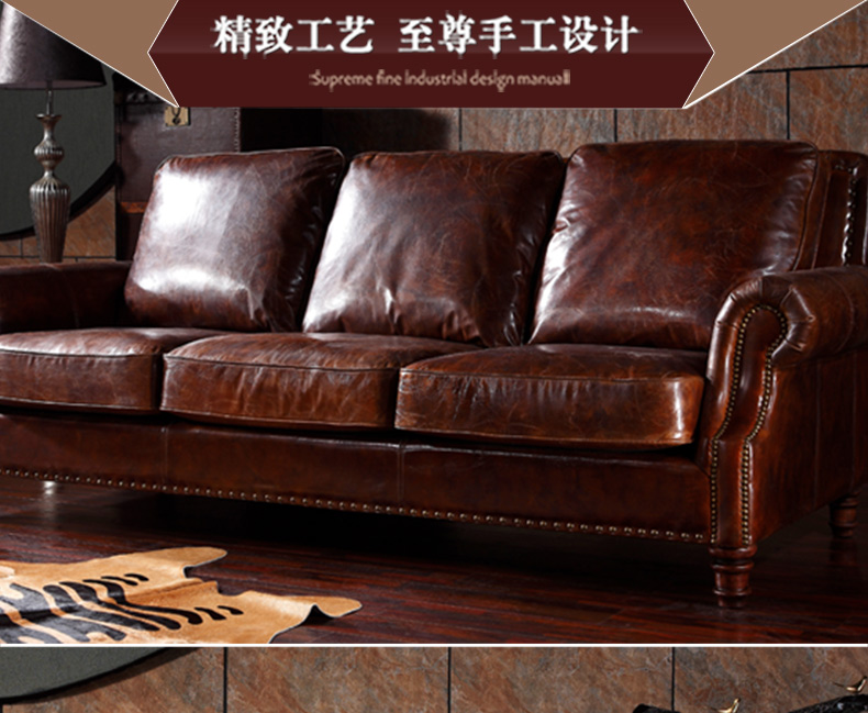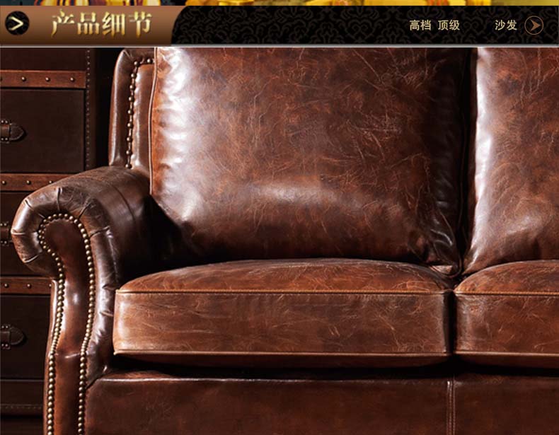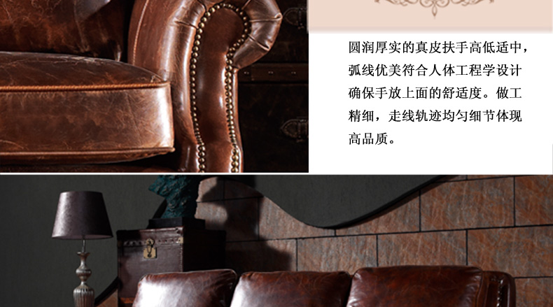 进口头层牛皮沙发美式新古典皮艺复古真皮沙发王者绝非偶然,完美的设计、精湛的工艺、厚道的选材、实惠的价格,独特流线元素,清晰美观,营造高贵优雅的生活!尊贵奢华 ,品质铸就精品,卓越艺术,新古典典范
