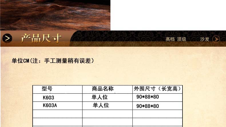 外围尺寸单位:cm(长宽高) 单人位90*88*80