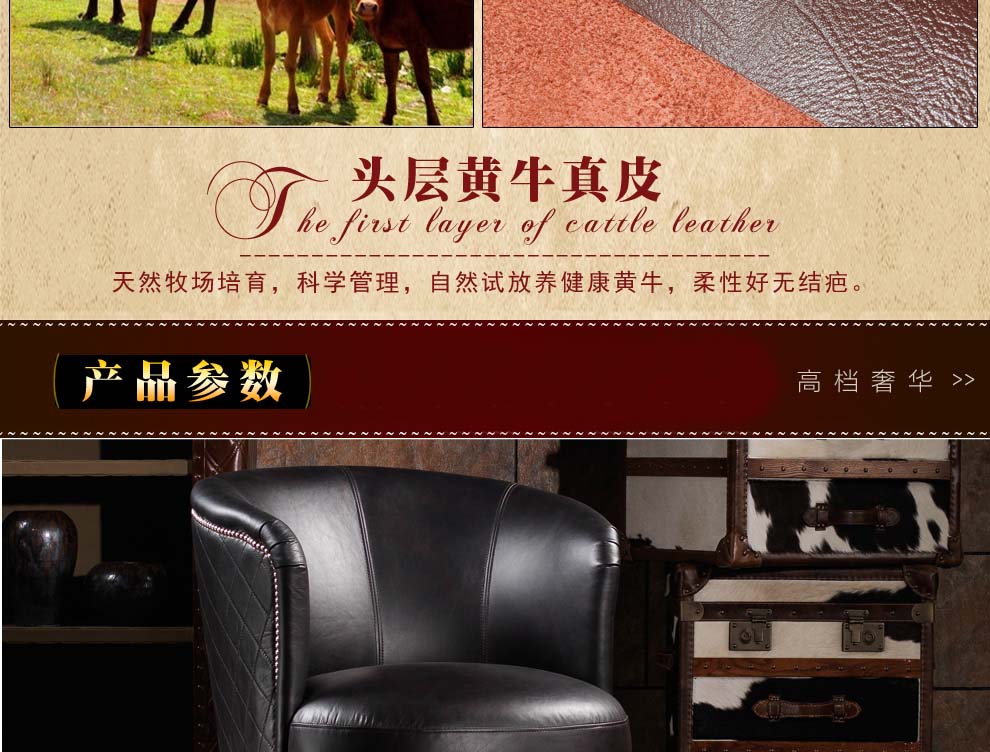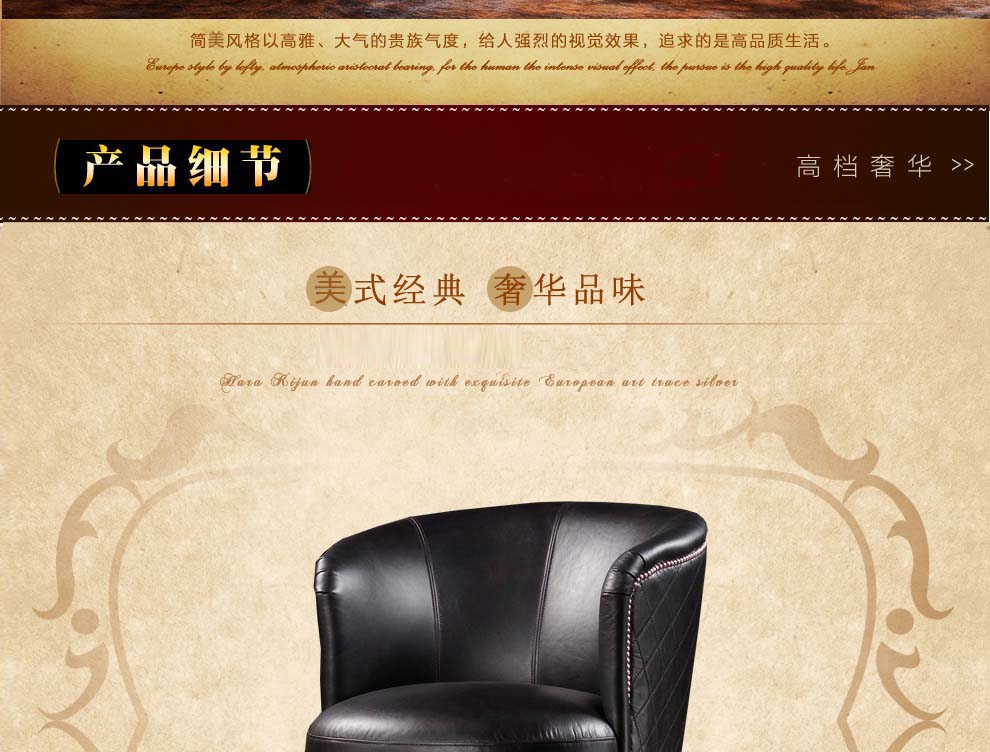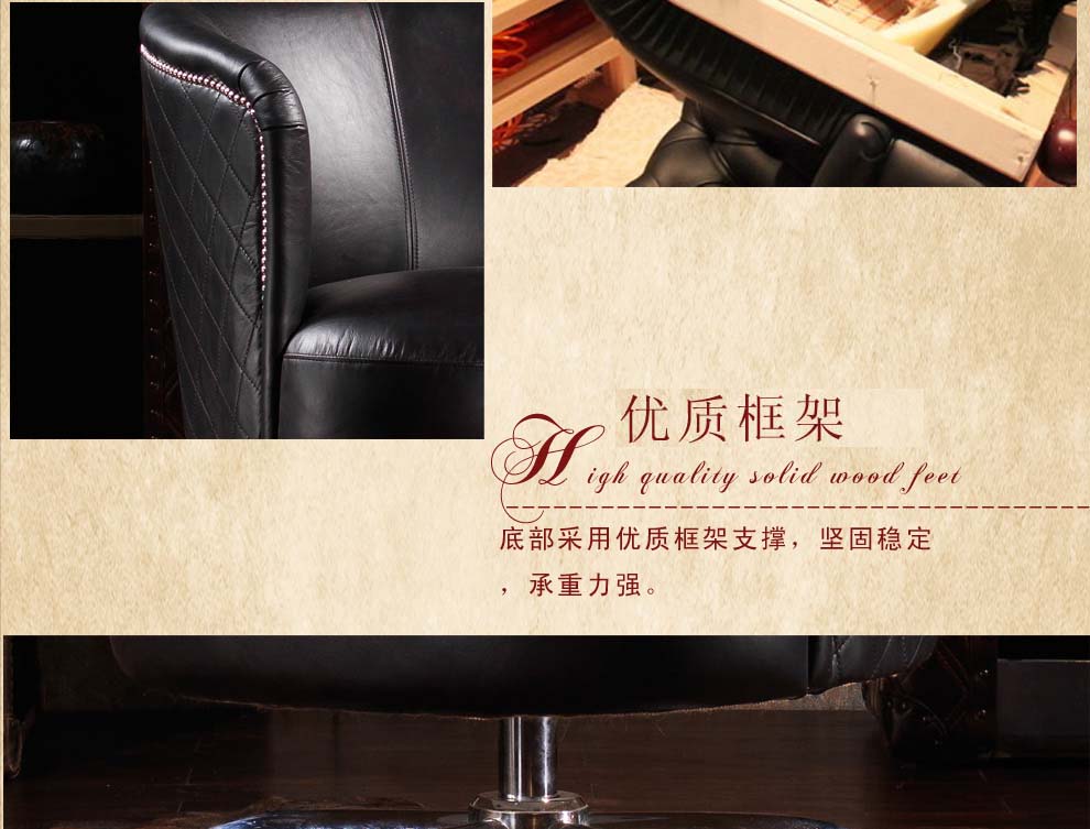 昂克雷 厂家直销美式新款沙发真皮沙发实木框架沙发休闲椅K607