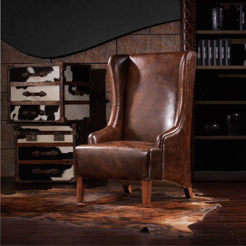 昂克雷 复古美式沙发椅 高档客厅沙发单人进口头层牛皮沙发休闲椅K610