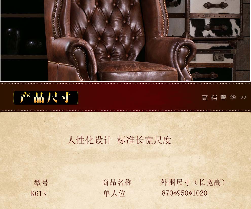 美式复古进口牛皮休闲高档沙发 单人位椅,实力见证品质 性价比超高!大件家具一用就是十年八年,环保健康耐用才是王道!好的品质好的服务!
