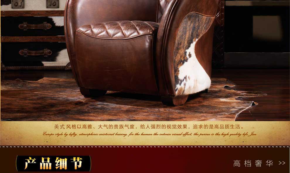 美式进口牛皮复古皮毛沙发椅高档古典休闲,实力见证品质 性价比超高!大件家具一用就是十年八年,环保健康耐用才是王道!好的品质好的服务!