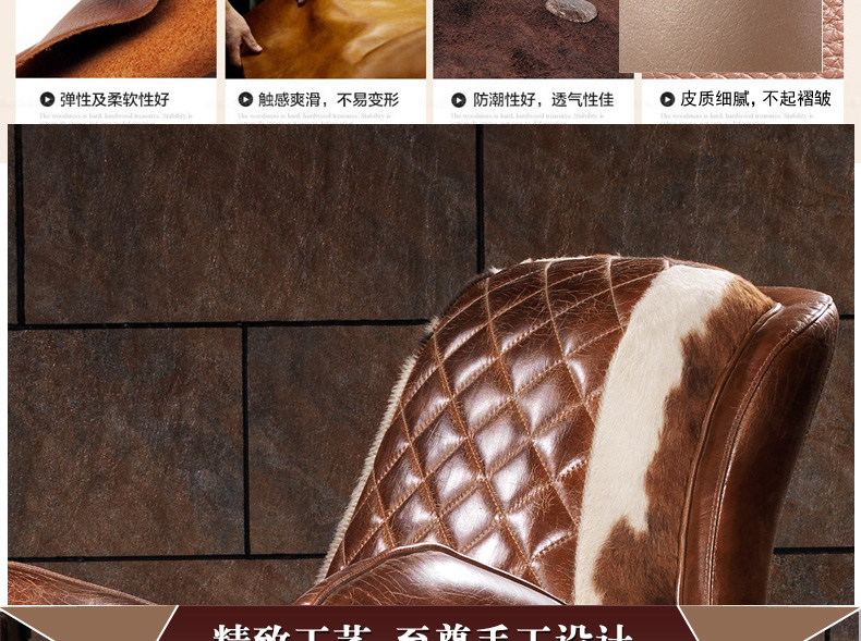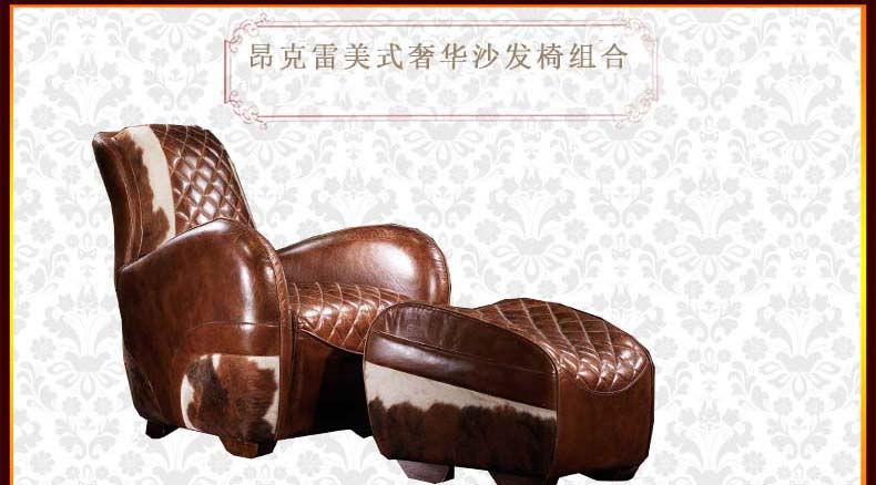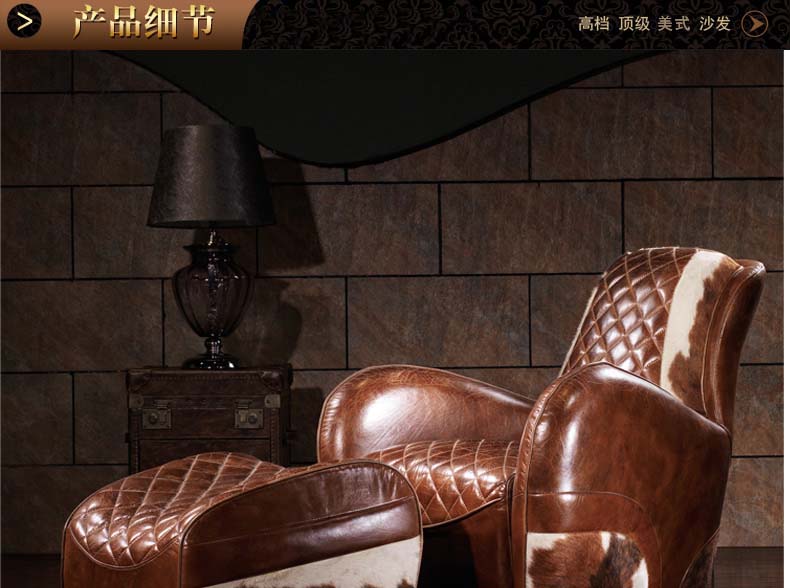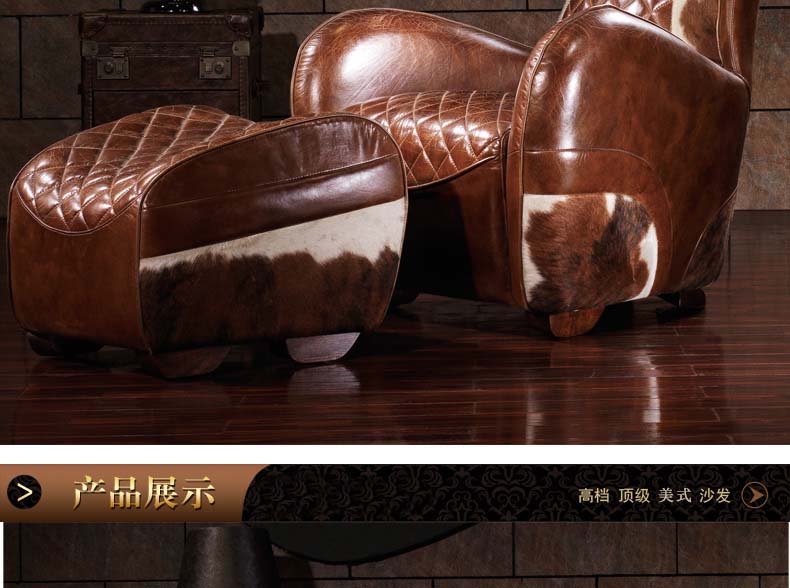 美式进口牛皮复古皮毛高档古典休闲沙发椅和踏,实力见证品质 性价比超高!大件家具一用就是十年八年,环保健康耐用才是王道!好的品质好的服务!
