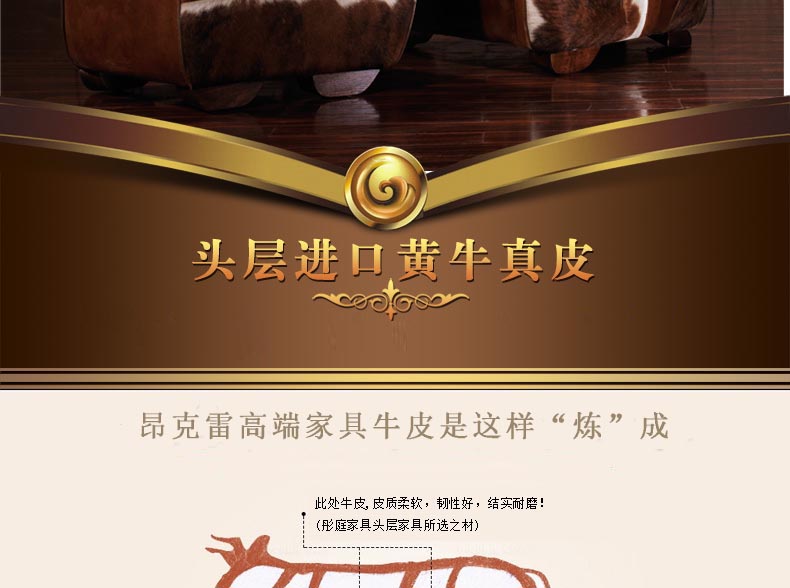 昂克雷 厂家直销美式新款沙发头层牛皮沙发实木框架沙发K618