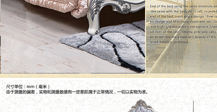 床尺寸为(mm)长2150*宽2250*高1750 床头柜尺寸为 长680*宽470*高690 床尾凳 尺寸 长1380*宽500*高520