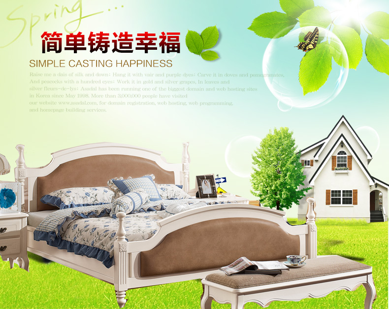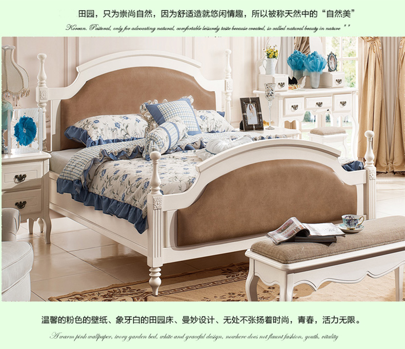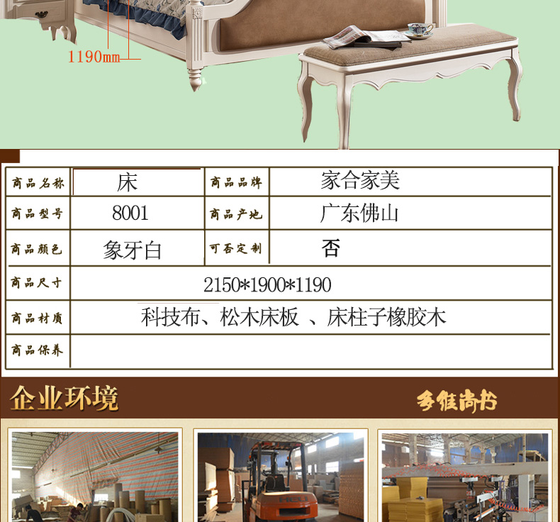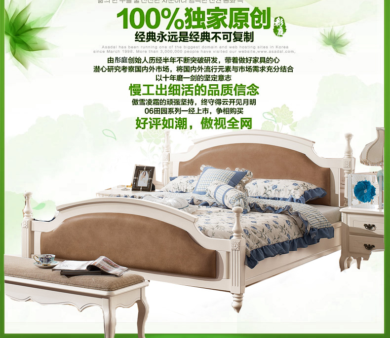 家合家美 田园风科技布松木床板橡胶木床柱环保板材婚床1.8米双人床8001