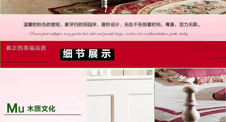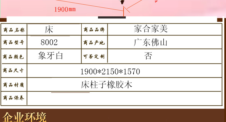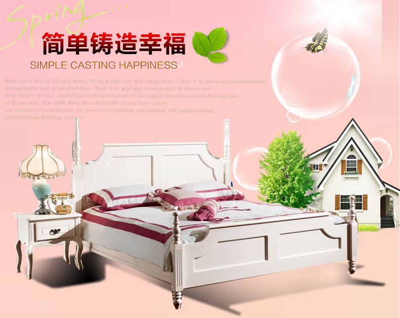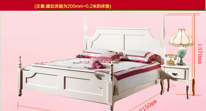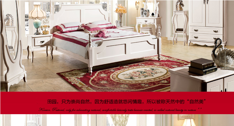 家合家美 田园风橡胶木床柱 环保板材 婚床 1.8米双人床8002