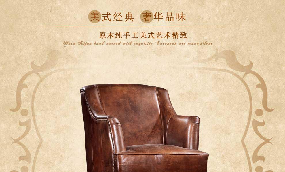 昂克雷 厂家直销美式进口头层牛皮复古高档简约休闲沙发椅K627