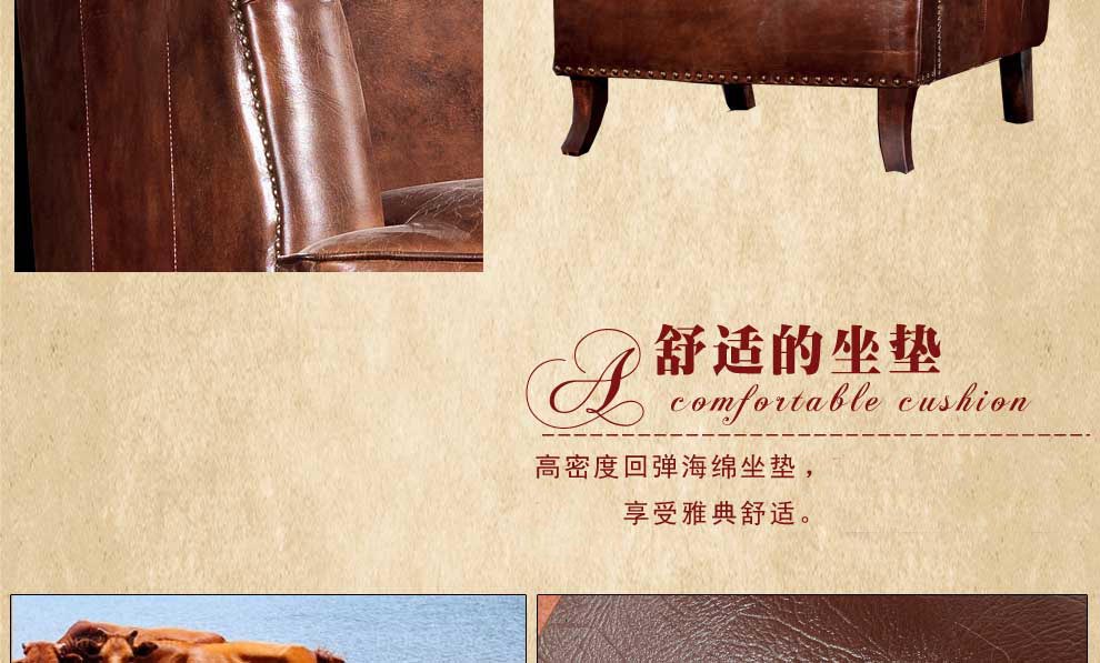 美式进口头层牛皮复古高档简约休闲沙发椅,实力见证品质 性价比超高!大件家具一用就是十年八年,环保健康耐用才是王道!好的品质好的服务!