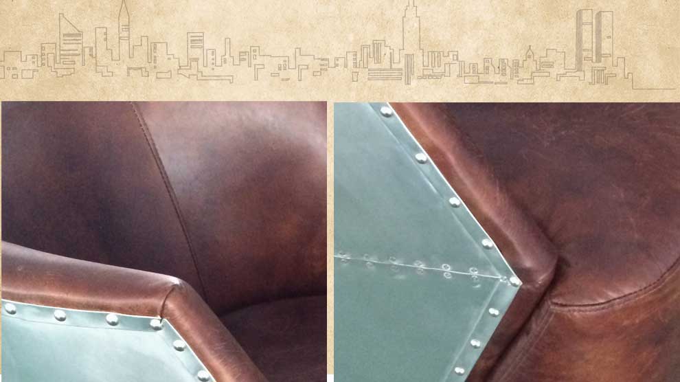 昂克雷家具美风复古进口牛皮时尚高品质休闲简约皮+铝沙发K631