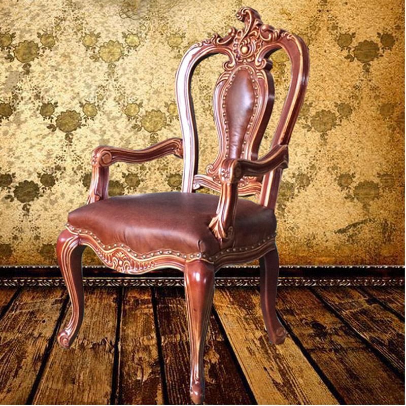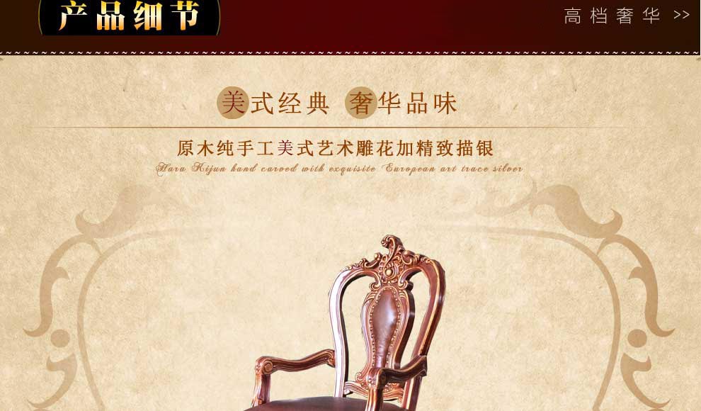 昂克雷家具美式进口牛皮实木雕花高档复古休闲椅子K632