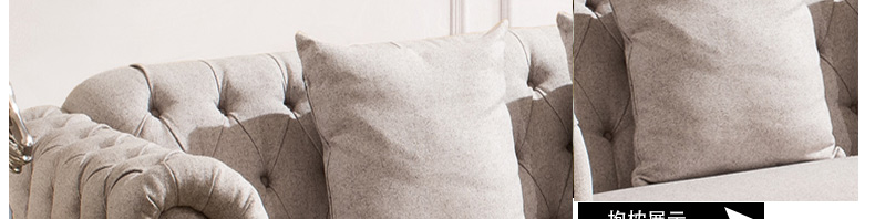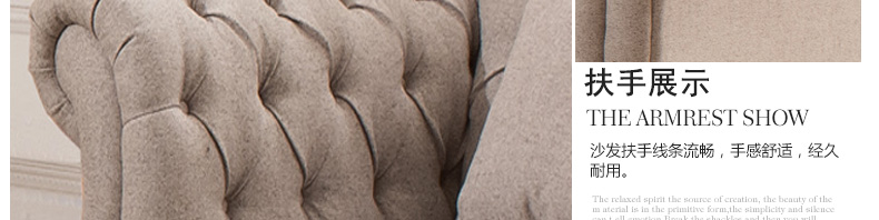 经典美式布艺沙发,适合简欧,美式,乡村,田园等多种装修风格,进口原版正品棉麻布料,35高密度高回弹纯正海绵填充,质保三正品保证,形神兼具