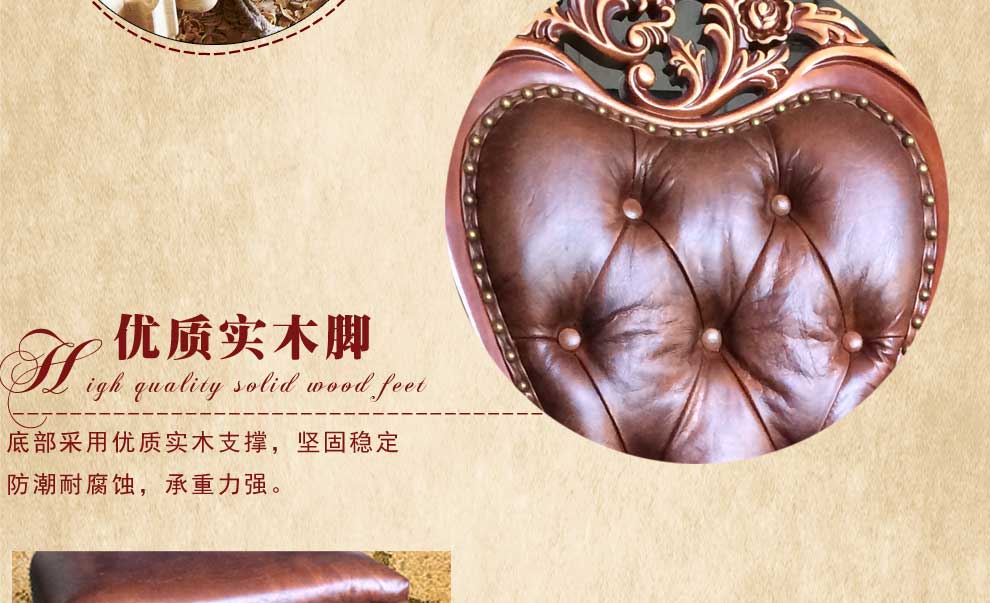 美式进口牛皮实木雕花高档复古休闲椅子,实力见证品质 性价比超高!大件家具一用就是十年八年,环保健康耐用才是王道!好的品质好的服务!