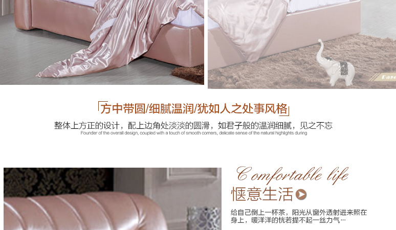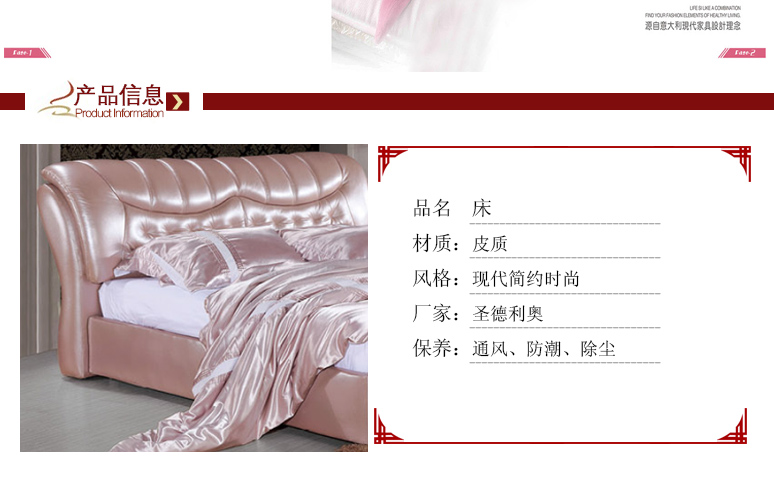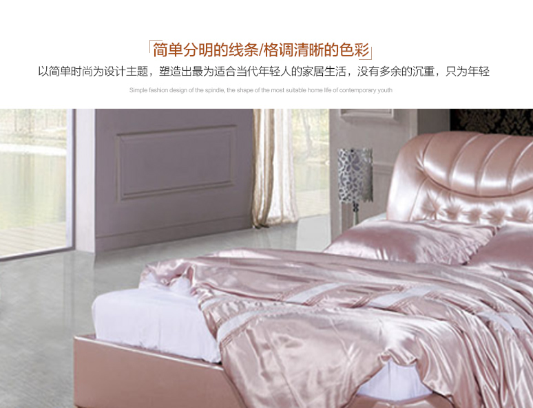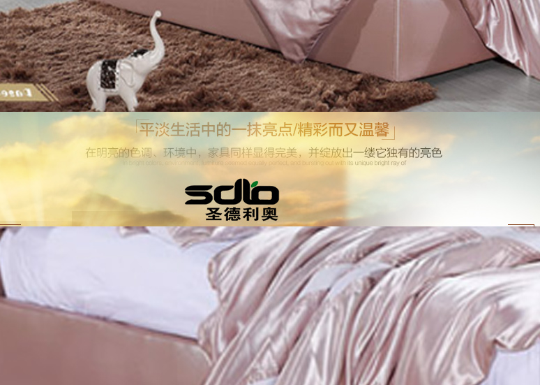 圣德利奥现代简约软包皮艺大床 色彩温馨 简洁大方 舒适美观