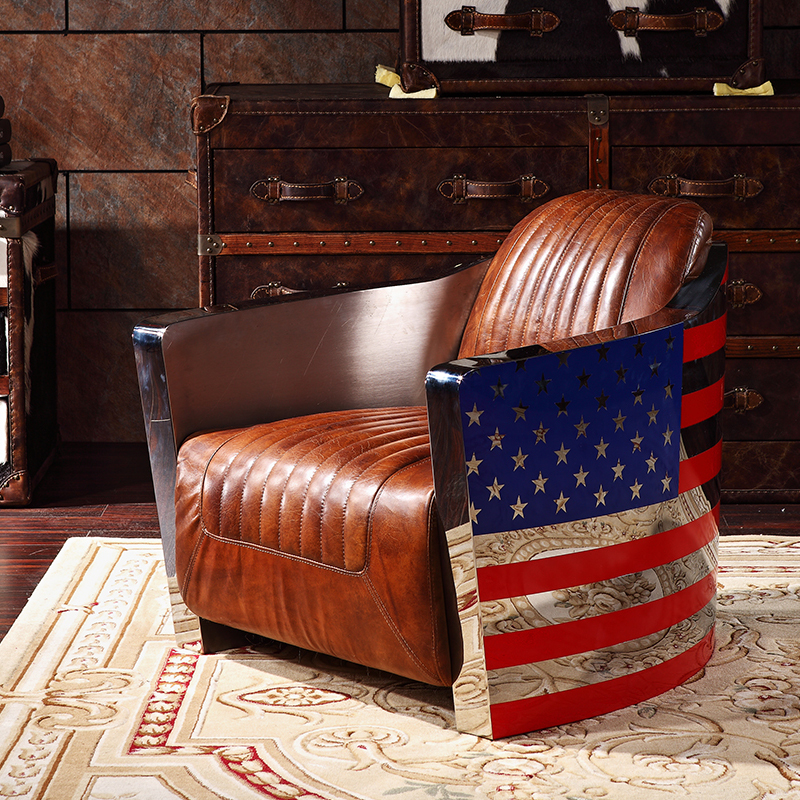 昂克雷 美式风格复古单人沙发 小户型客厅小沙发单椅真皮沙发K661