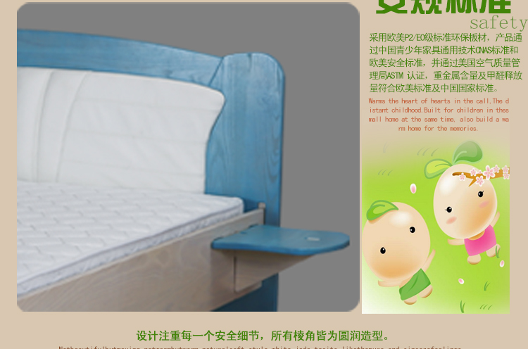 爱睿儿童床女孩男孩实木床1.5米 单人床公主床板式床套房家具SMC-0115