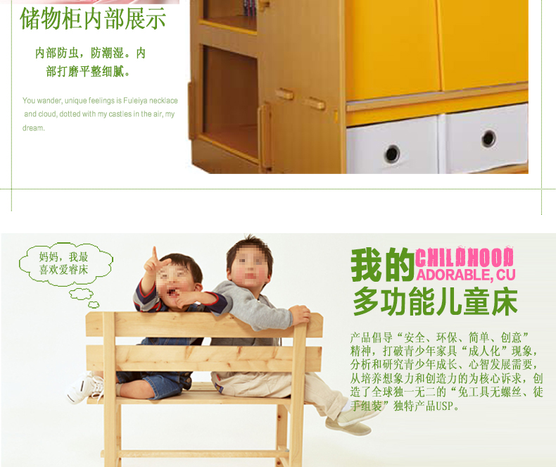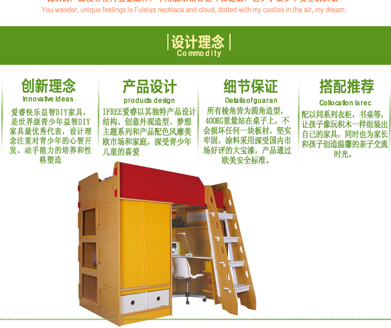 爱睿系列儿童手工DIY家具乡村床板式床高低床双层床儿童床子母床DGHC-XL012
