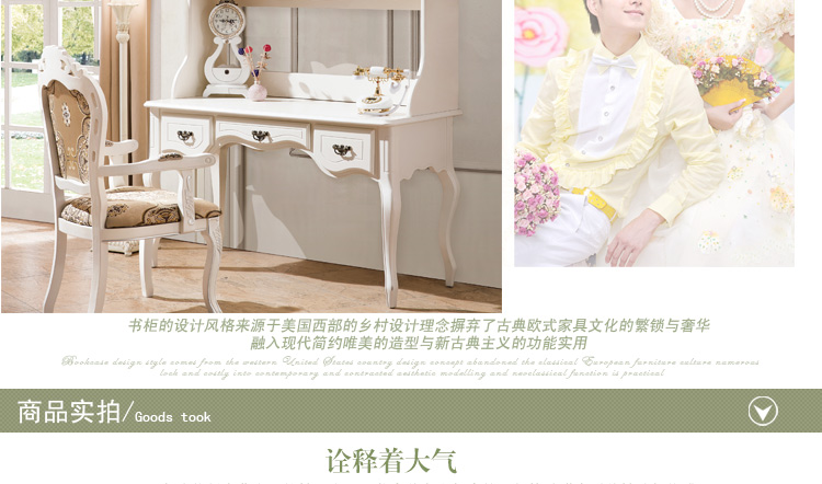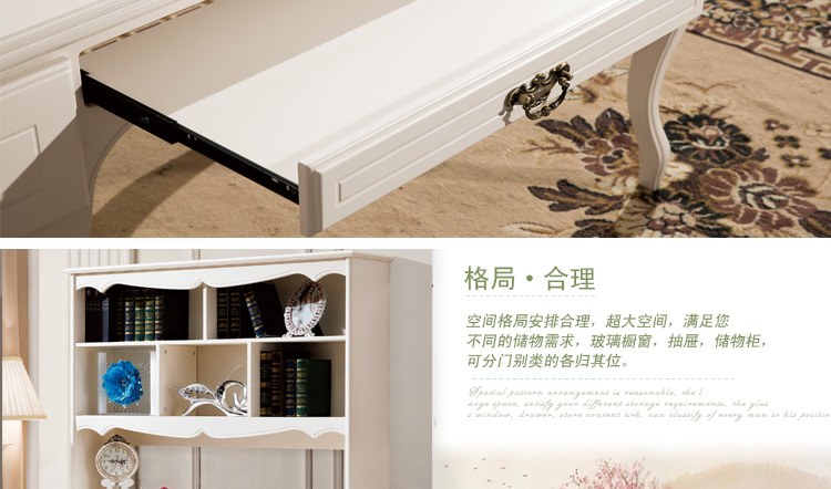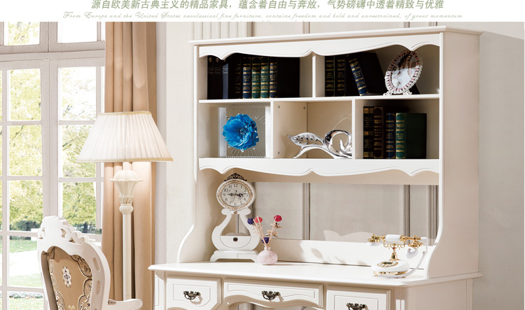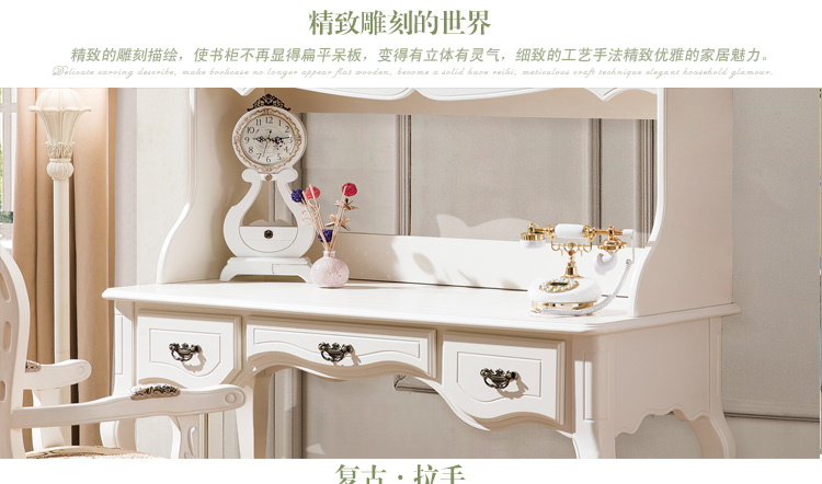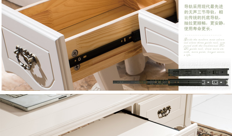 家合家美 美式乡村家具 实木成人书桌 田园白色带抽屉 淑女书桌JM003