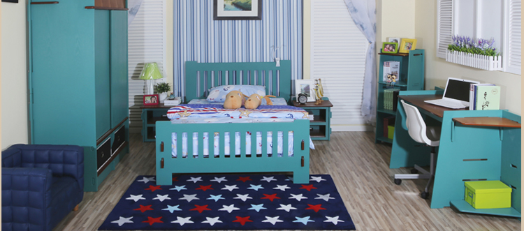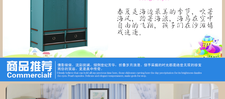 爱睿系列美式实木衣柜韩式简约卧室蓝色两门儿童整体衣柜CDYG-05L