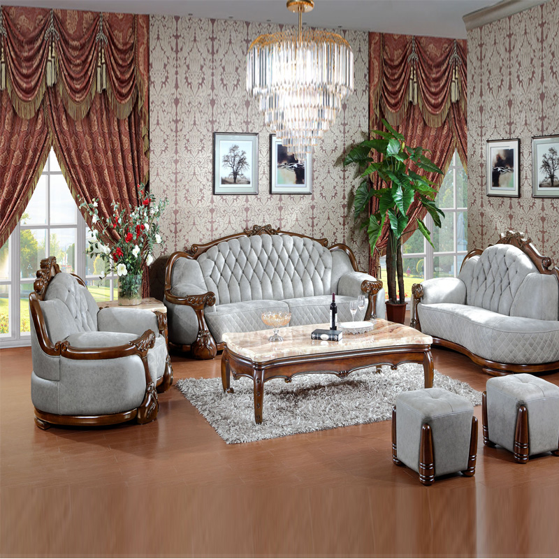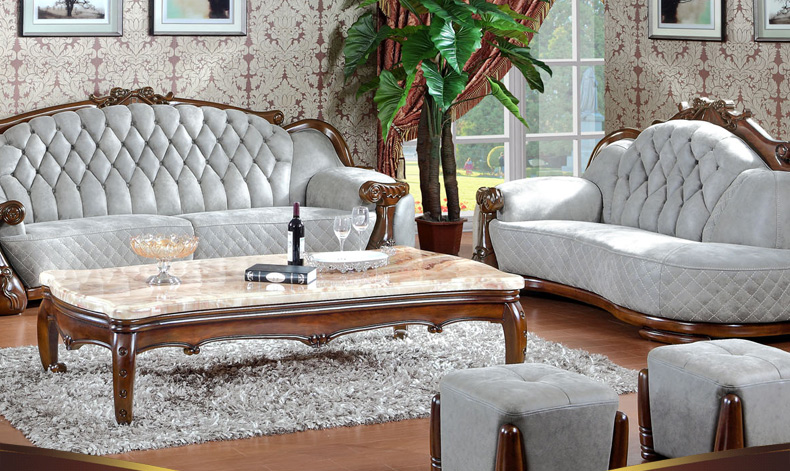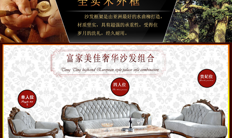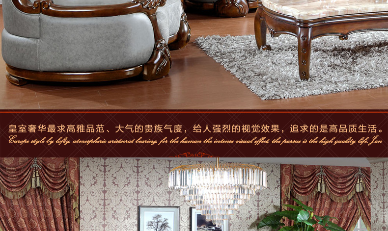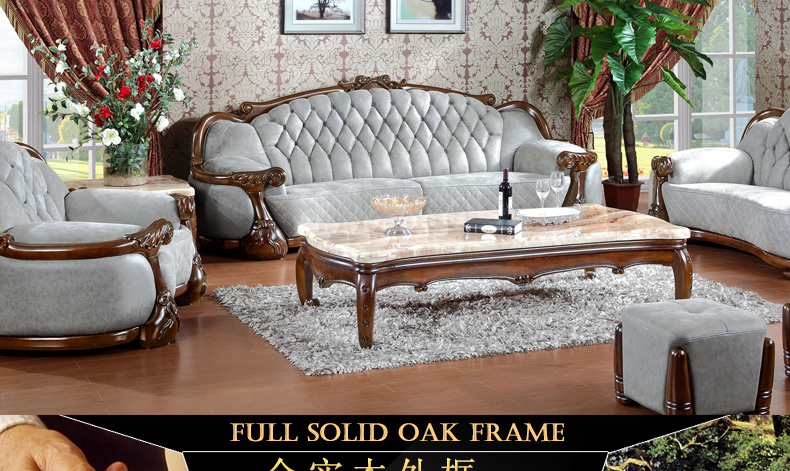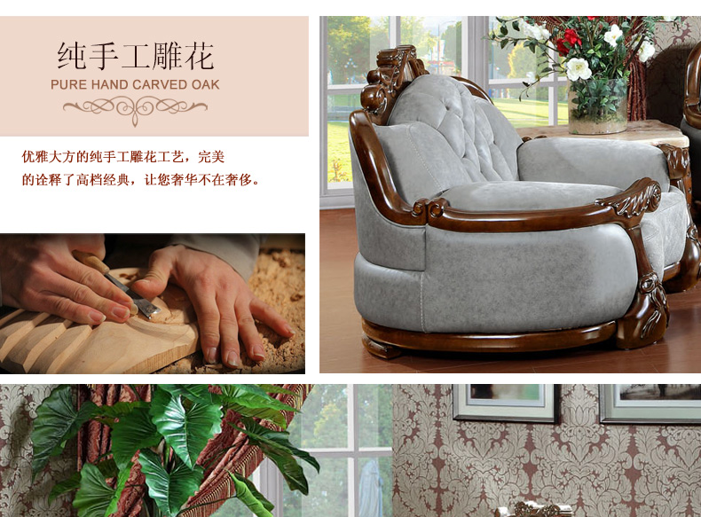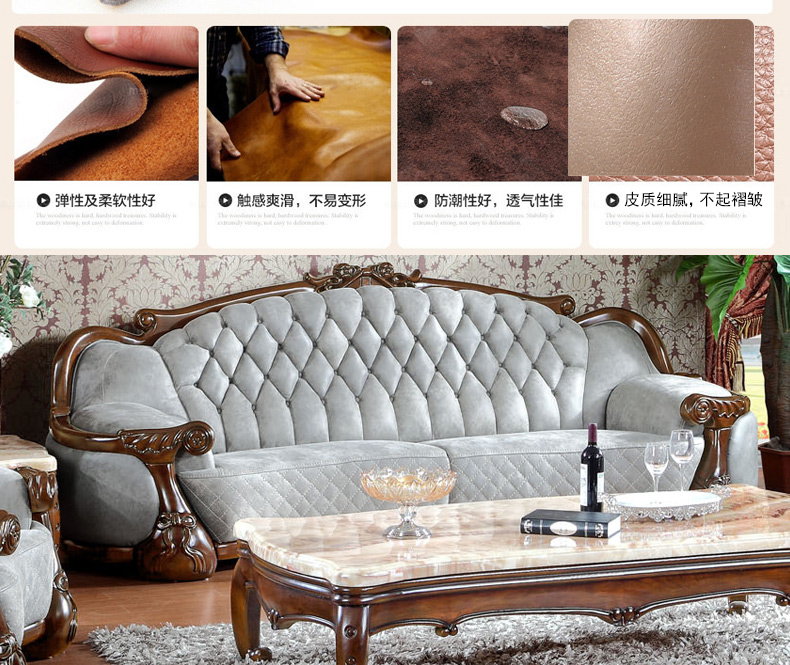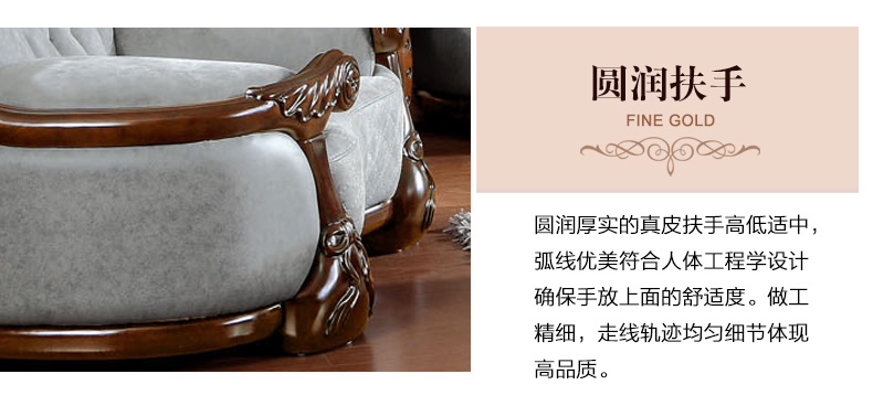 富家美佳系列欧式真皮沙发实木雕花家具组合头层牛皮艺沙发B295