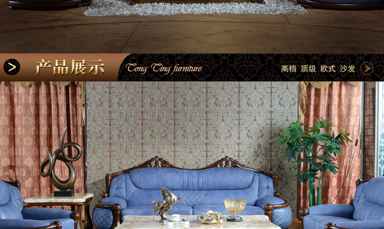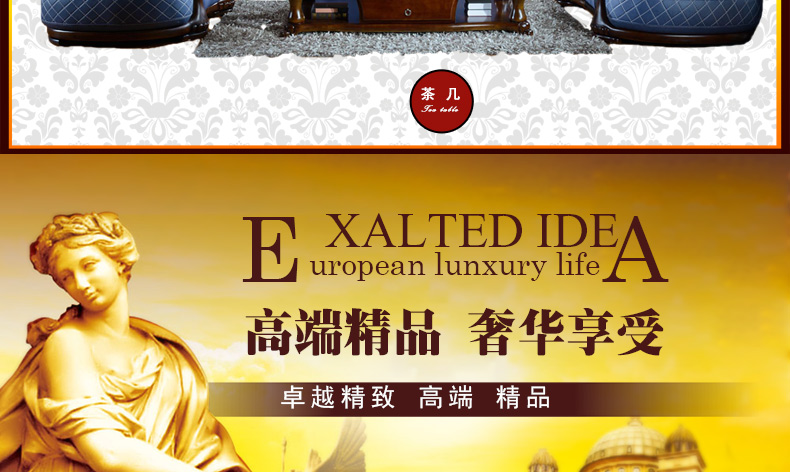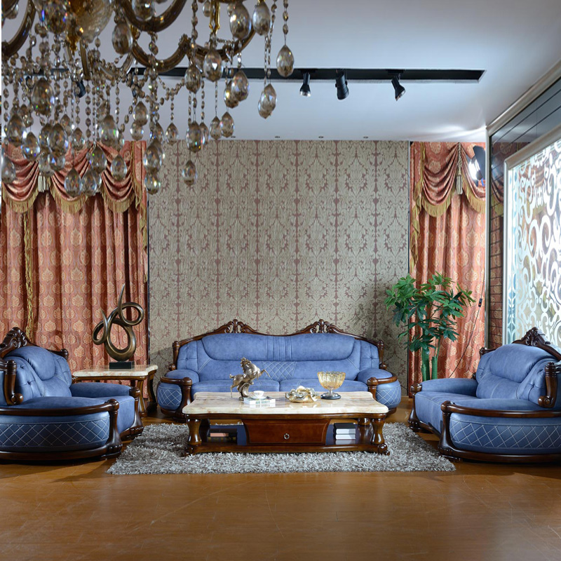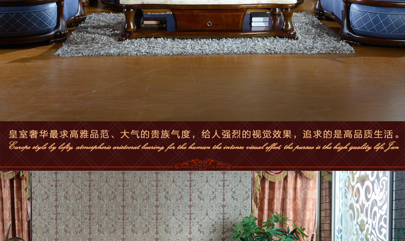 富家美佳系列真皮沙发实木雕花欧式风格组合头层牛皮艺沙发B303