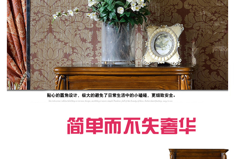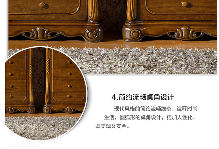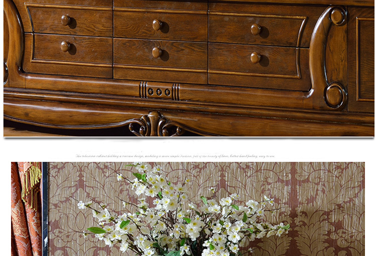 美式仿古做旧效果,手工雕花精致大方;实木柜脚,多层隔断储物空间。清晰的拼花木面纹理,细腻而有光泽。每一处细致的雕花,传承百年美式经典工艺
