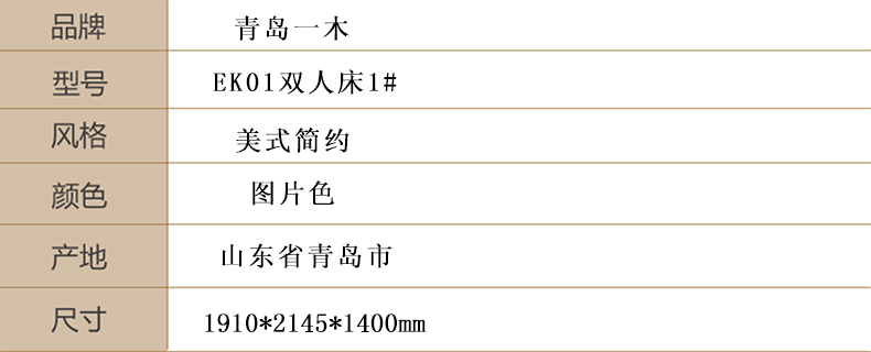 美式实木床全实木床现代简约双人床卧室家具青岛一木EK01双人床1#