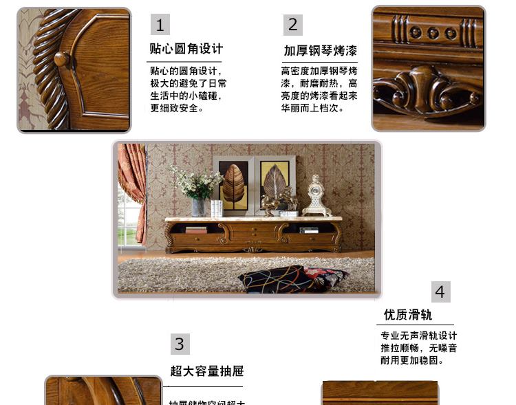 富家美佳系列实木电视柜欧式实木地柜 客厅矮地柜K90B