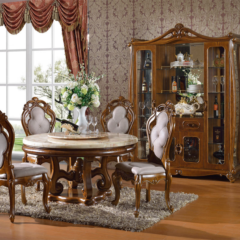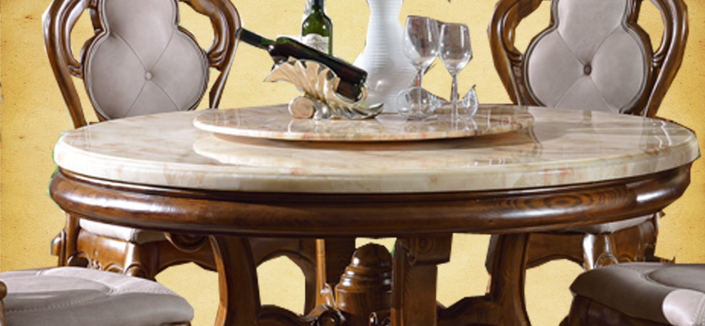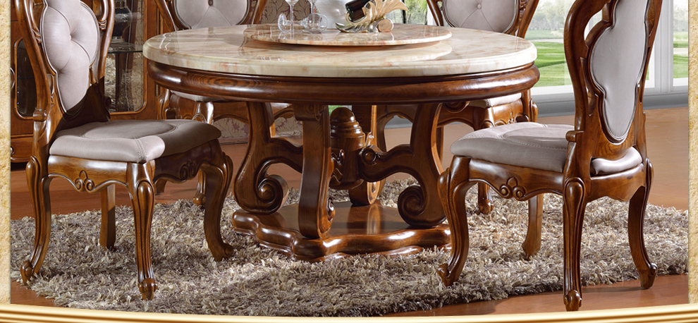 富家美佳系列欧式大理石餐桌 圆形高档餐台 简约现代圆桌 餐桌椅组合K91